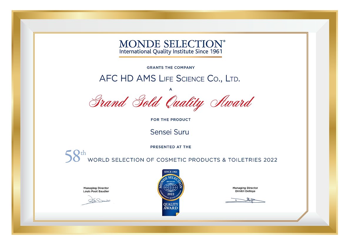Suru Sensei 荣获 International Award Monde Selection 颁发的优质金奖。